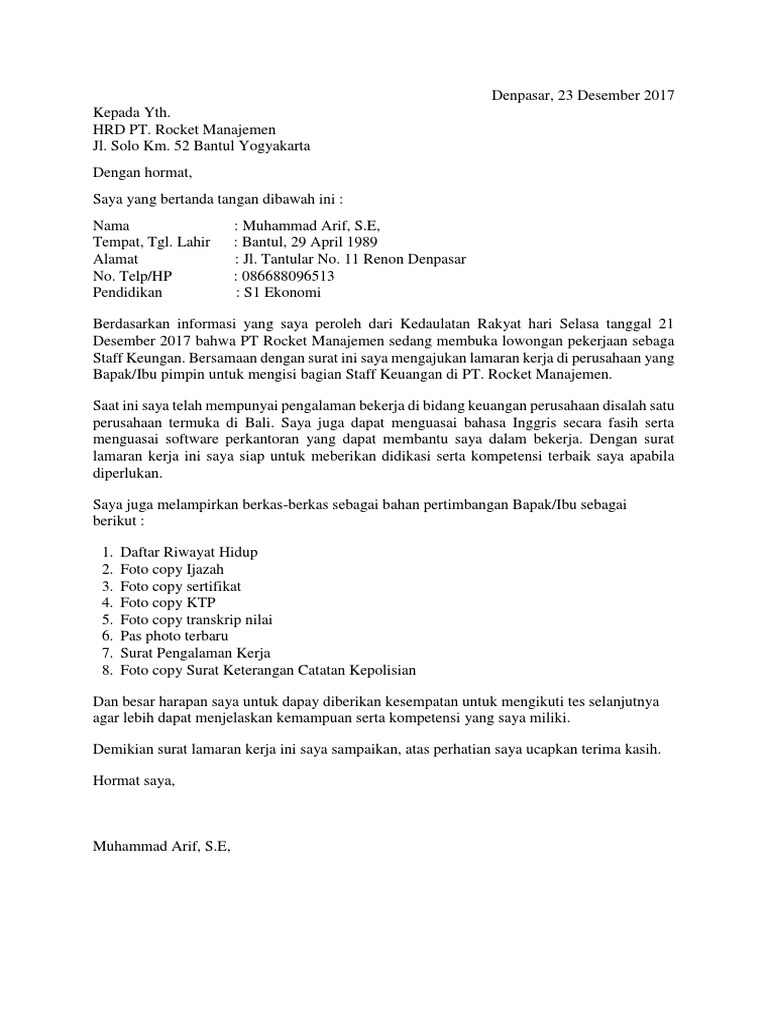 Contoh Membuat Surat Lamaran Kerja - Download Kumpulan Gambar
